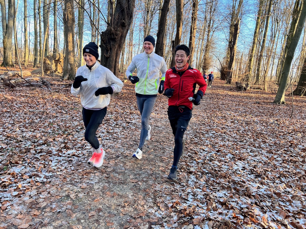 Jeg startede ud sammen med David, der stoppede efter et halvmarathom og løb den sidste del med Marie og Steen.